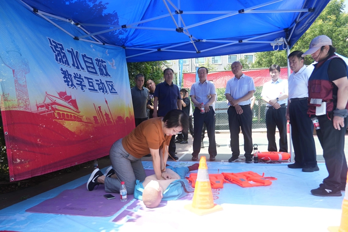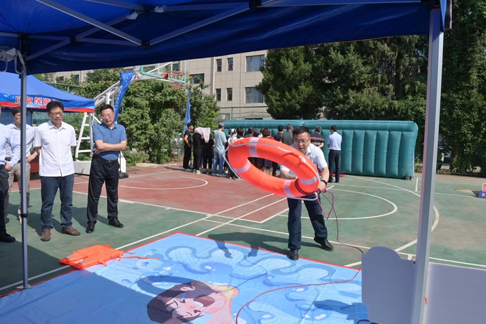 演練結(jié)束后,舉辦方在大廈籃球場開啟安全咨詢體驗活動。整個活動共設(shè)置了6個項目,分別為擁擠踩踏應(yīng)急處置體驗區(qū)(充氣帳篷)、消防隱患排查試驗區(qū)、電動車電池穿刺爆燃體驗裝置、溺水自救互救教學(xué)培訓(xùn)區(qū)、醉酒交通AR模擬體驗、安全標(biāo)志互動區(qū)?;顒蝇F(xiàn)場氣氛熱烈,盡管天氣炎熱,但絲毫沒有減弱大家體驗掌握應(yīng)急技能的熱情。