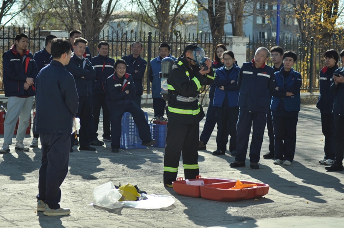 化研院首先進行了模擬辦公樓起火疏散演練。培訓伊始,消防站專業人員結合近年來典型的火災案例,深入淺出地講解了火災危害、報警程序、逃生注意事項等極具實用性的方式方法。
